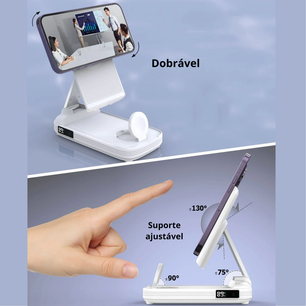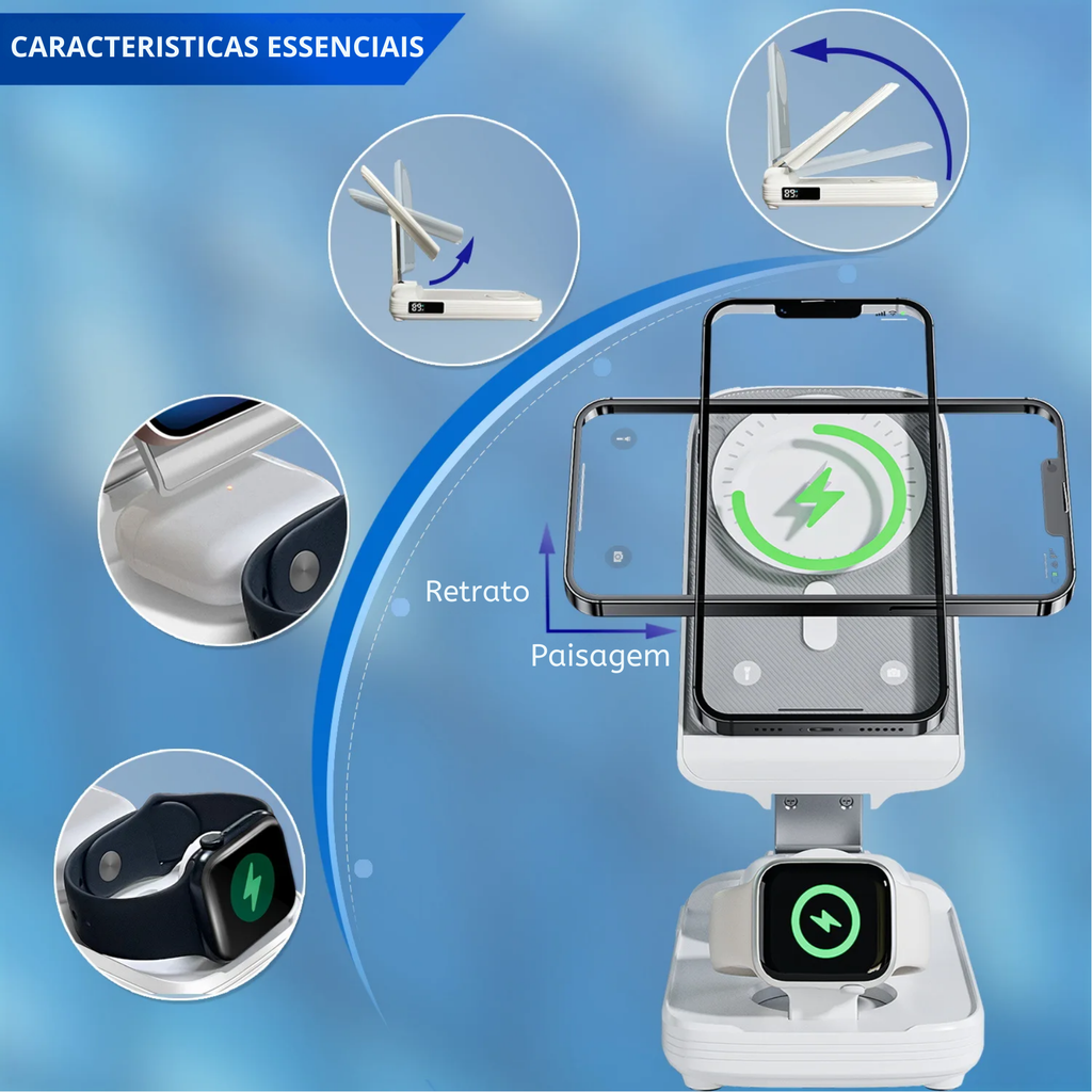 - Versatilidade 3 em 1: Permite carregar simultaneamente seu iPhone, Apple Watch e AirPods, simplificando sua rotina com um dispositivo único.